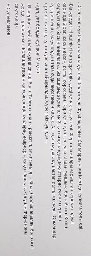 Мәтіннің негізгі ойын білдіретін екі сөйлемді анықтаңыздар.
