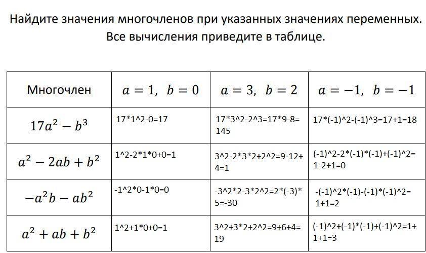 Ответ: Всё в таблице.