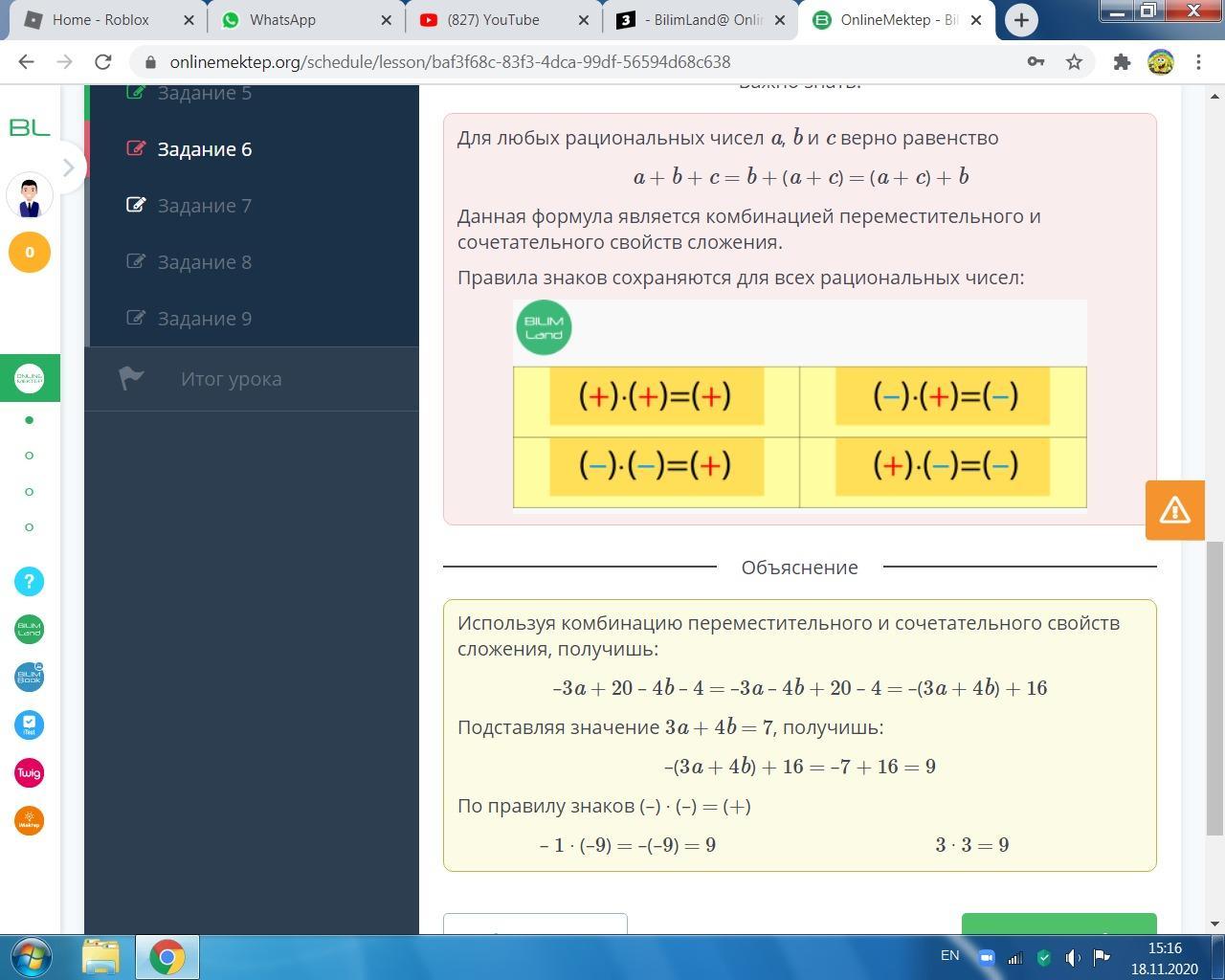 Найди значение выражения -За + 20 - 4b - 4, если за + 4b = 7.