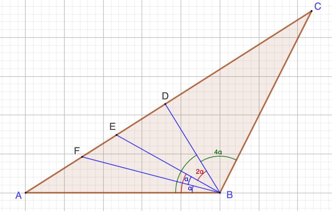 a ∠ABD=∠DBC=4α (BD – биссектриса ∠ABC).