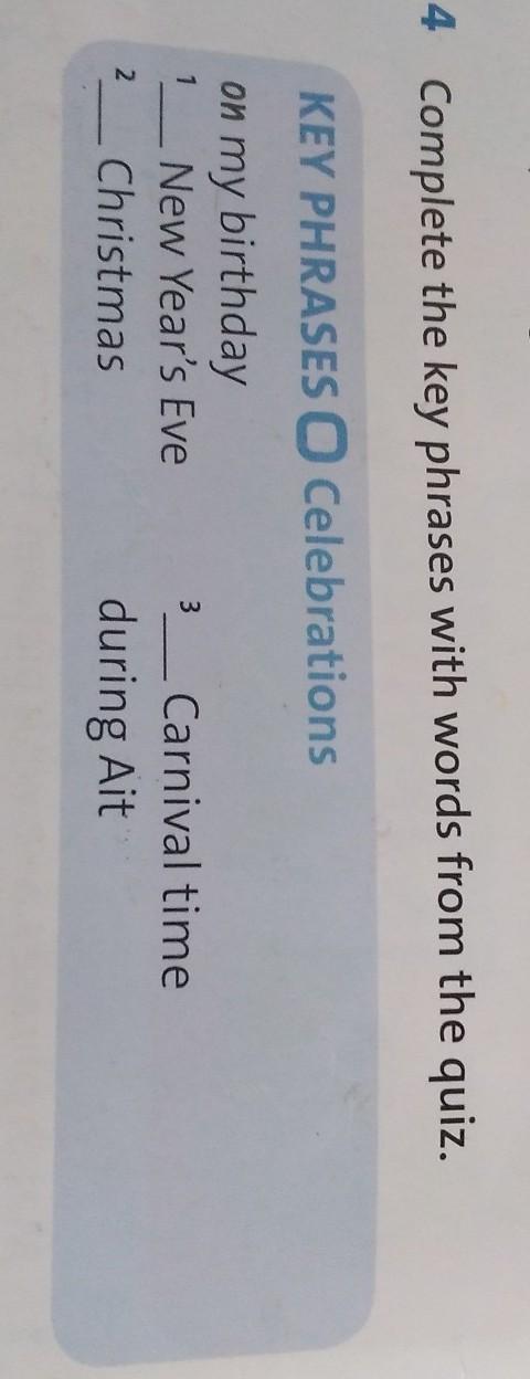 4 Заполните ключевые фразы словами из викторины