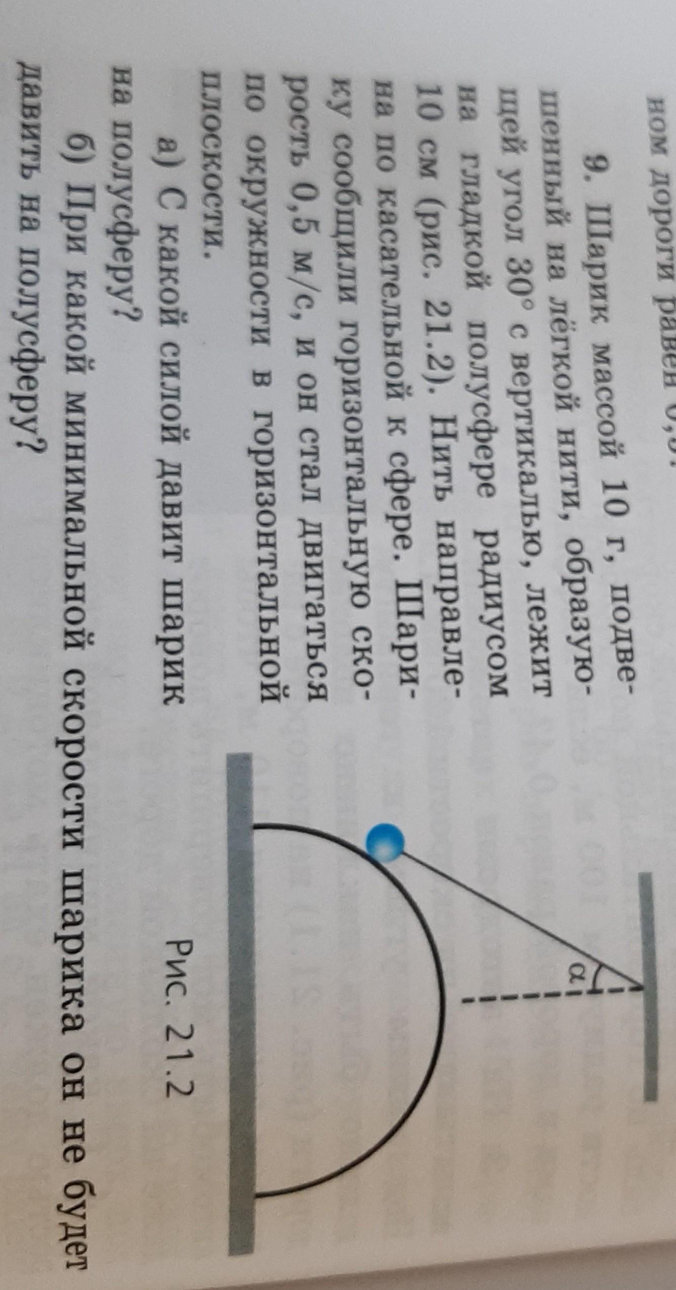 а) На шарик действуют составляющая силы тяжести и центробежная сила от движения по окружности. Эти силы разно направлены . сила прижимающая шарик к сфере - составляющая силы тяжести