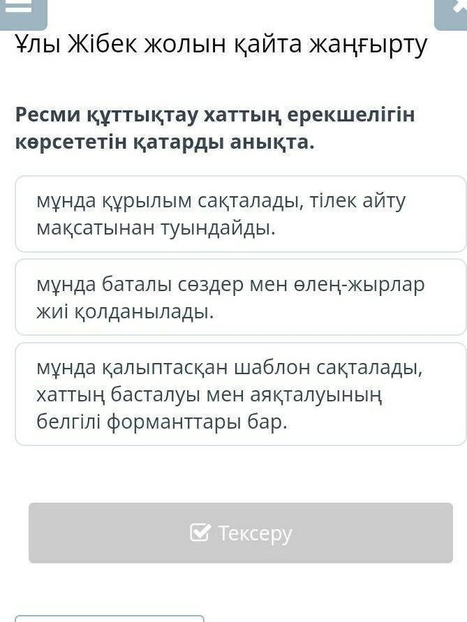 Ресми құттықтау хаттың ерекшелігін көрсететін қатарды анықта.
