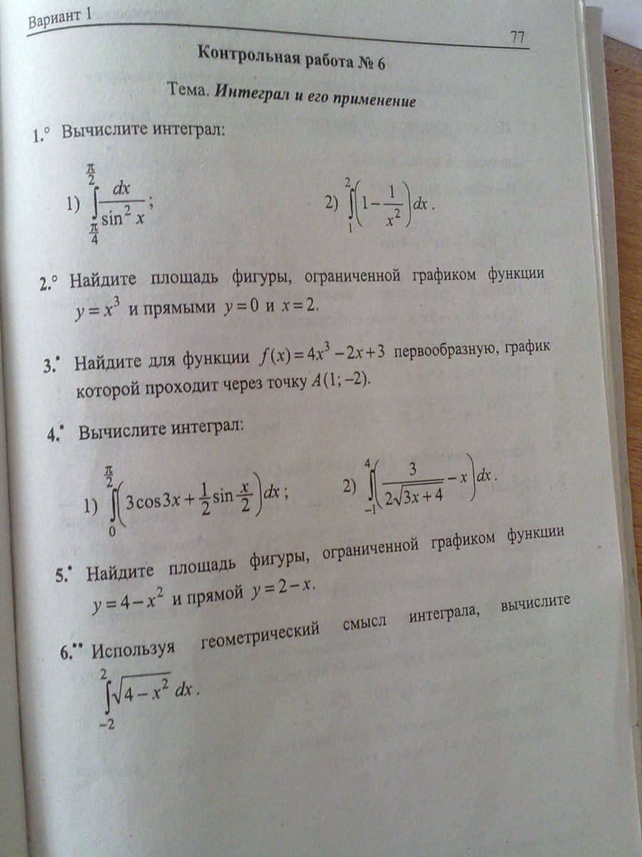1) 1/3·3 sin3x + 1/2·2(-cosx/2)= sin3x-cosx/2 = (sin 3-π/2 - sin 0) - (cosπ/2/2 - cos0) =( -1 - 0) - √2/2-1= -1 - √2/2 +1 = -√2/2