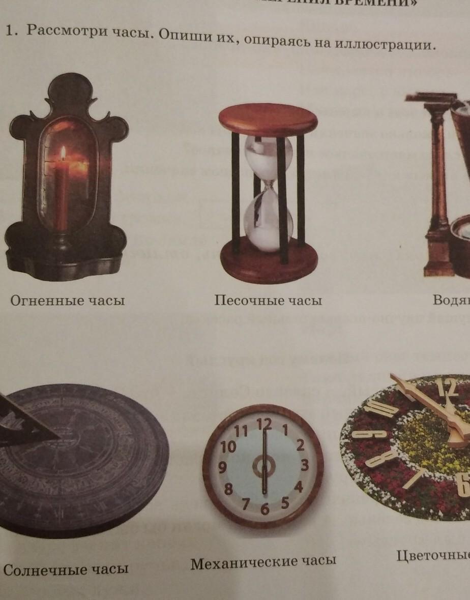 1. Рассмотри часы. Опиши их, опираясь на иллюстрации.