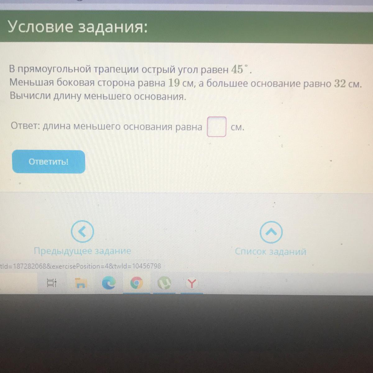 Т.к. угол 45 , то высота трапеции образует равнобедренный треугольник.