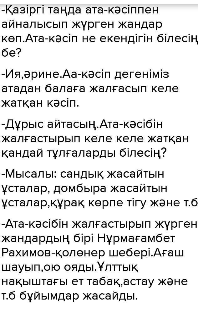 7-тапсырма. «Ата кәсіп» тақырыбына диалог құрыңдар. Сұрақ қою арқылы
