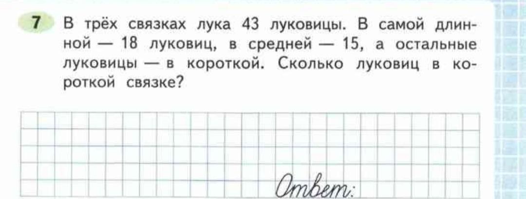 18 + 15 = 33 луковицы - сумма самой длинной и средней связки лука