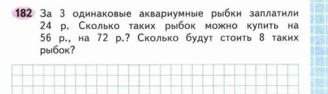 24:3=8(рублей)одна рыбка