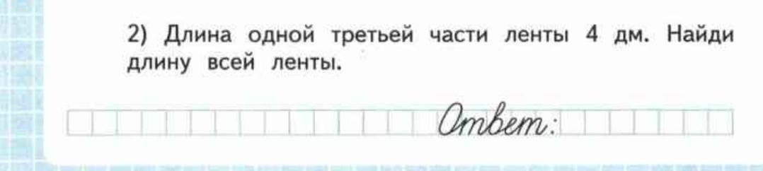 3 ÷ ¼ = 3 × 4 = 12 дм - длина всей ленты