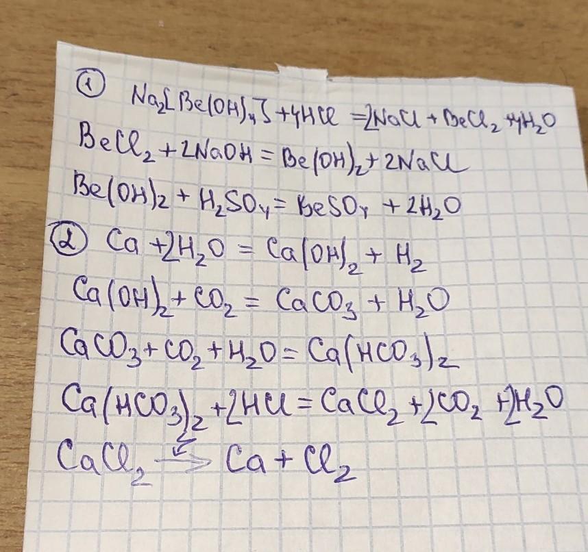 1. Напишите уравнения реакций, протекающих при осуществлении следующих превращений: Be → Na2[Be(OH)4] → BeCl2 → Be(OH)2 → BeSO4
