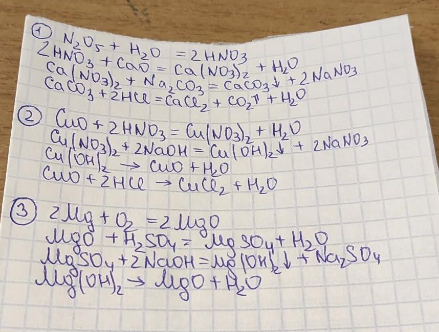 N2O5 -> HNO3 -> Ca(NO3)3 -> CaCO3 -> CaCl2;