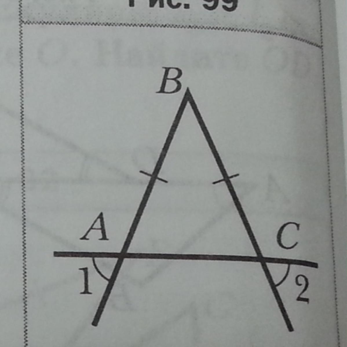 Но заметим, что ∠ВАС = ∠1 и ∠ВСА = ∠2 (так как вертикальные). Тогда делаем вывод, что