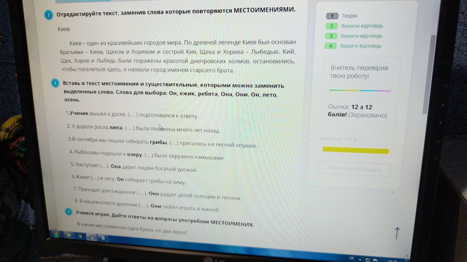 1. Он 2. Она 3. Они 4. Оно 5. осень 6. ёжик наверное 7. Лето 8. Ребята или ученики