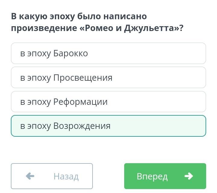 В какую эпоху было написано произведение «Ромео и Джульетта»?