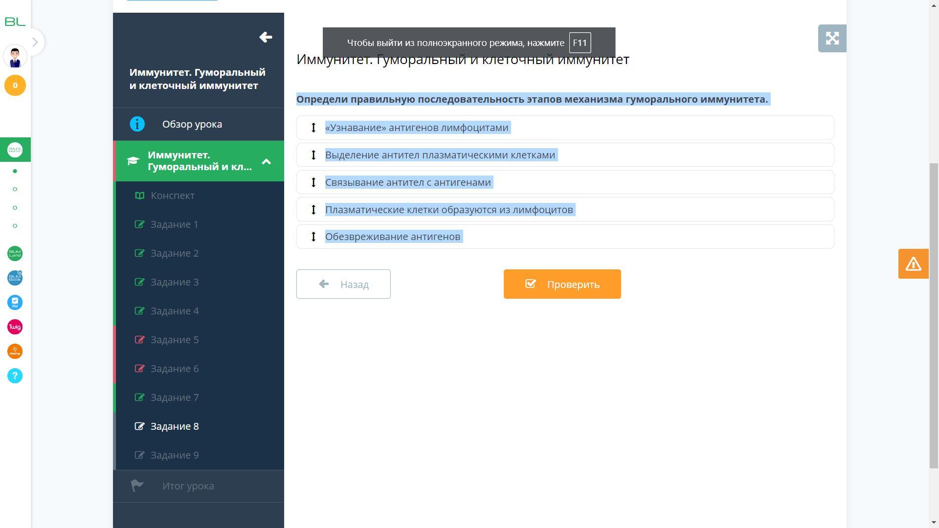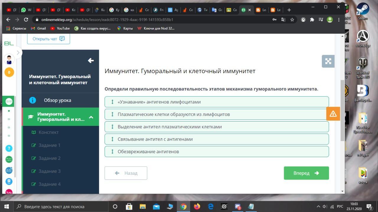 Определи правильную последовательность этапов механизма гуморального иммунитета.