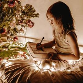 фотография имеет новогоднее настроение . На фотографии изображена девочка , которая в предвкушении нового года пишет письмо деду морозу . Очень красочный интерьер помещения . Ярко горит ёлка, тёплое одеяло, на котором сидит девочка , все как в сказке . Героиня пишет письмо деду морозу . У неё виден задумчивый взгляд , поэтому она даже не отвлекаться на то, что происходит вокруг . Фотография передаёт домашнее тепло и новогодний уют . При просмотре фото , приходит нереально крутое и новогоднее настроение . На фото нет мандаринов , но запах передаётся, по той атмосфере которую запечатлил фотограф . Очень красивое фото , имеющее много эмоций .