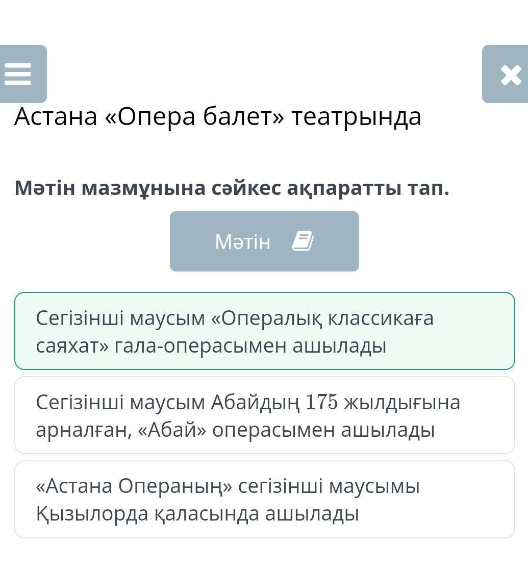 Мәтін мазмұнына сəйкес ақпаратты тап.