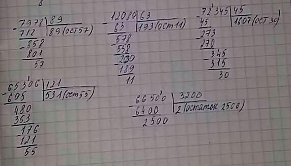 ;3) 72 345 на 45; ; и) 65 306 на 121;