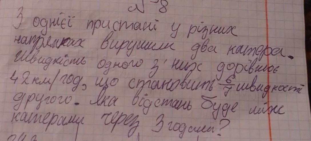 1) 42 : 6/7 = 42 · 7/6 = 7 · 7 = 49 (км/ч) - скорость другого катера;
