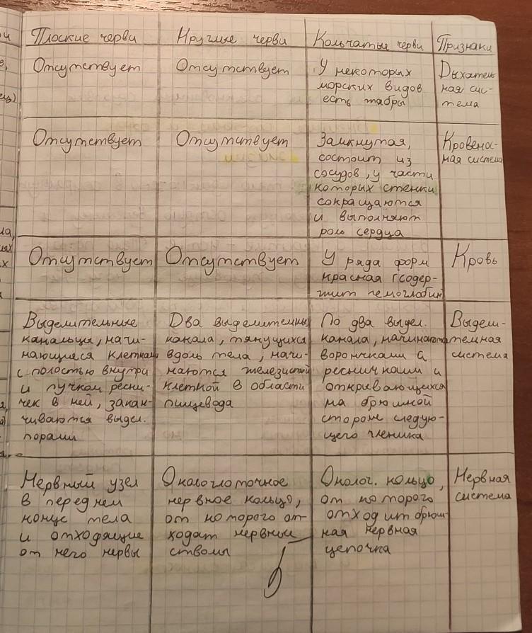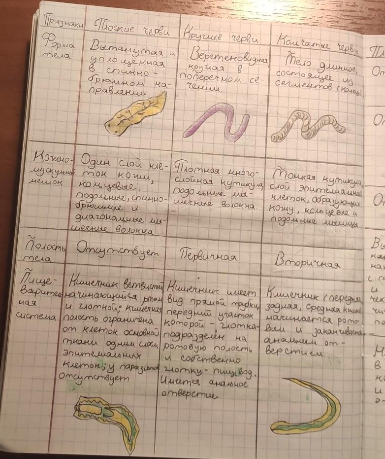 нужно сделать таблицу : Плоские черви Круглые черви Кольчатые черви
