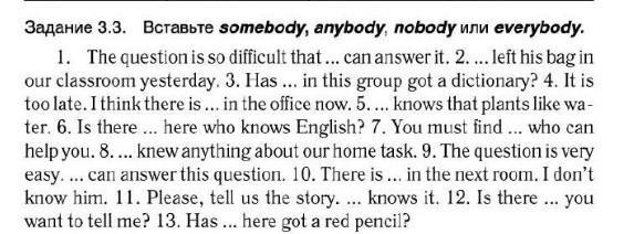 вставьте somebody, anybody, nobody или everybody, помогите пожалуйста срочно нужно