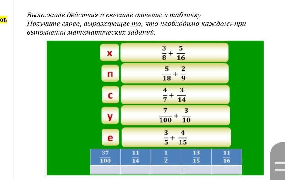 Получите слово, выражающее то, что необходимо каждому при выполнении математических заданий.
