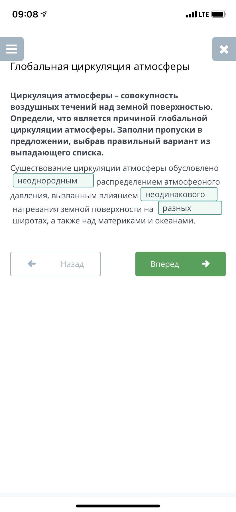 Циркуляция атмосферы – совокупность воздушных течений над земной поверхностью. Определи, что является причиной глобальной циркуляции атмосферы. Заполни пропуски в предложении, выбрав правильный вариант из выпадающего списка.