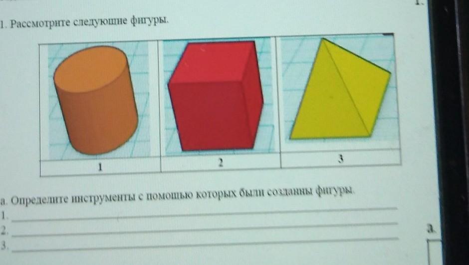 а. Определите инструменты с помощью которых были созданны фигуры.