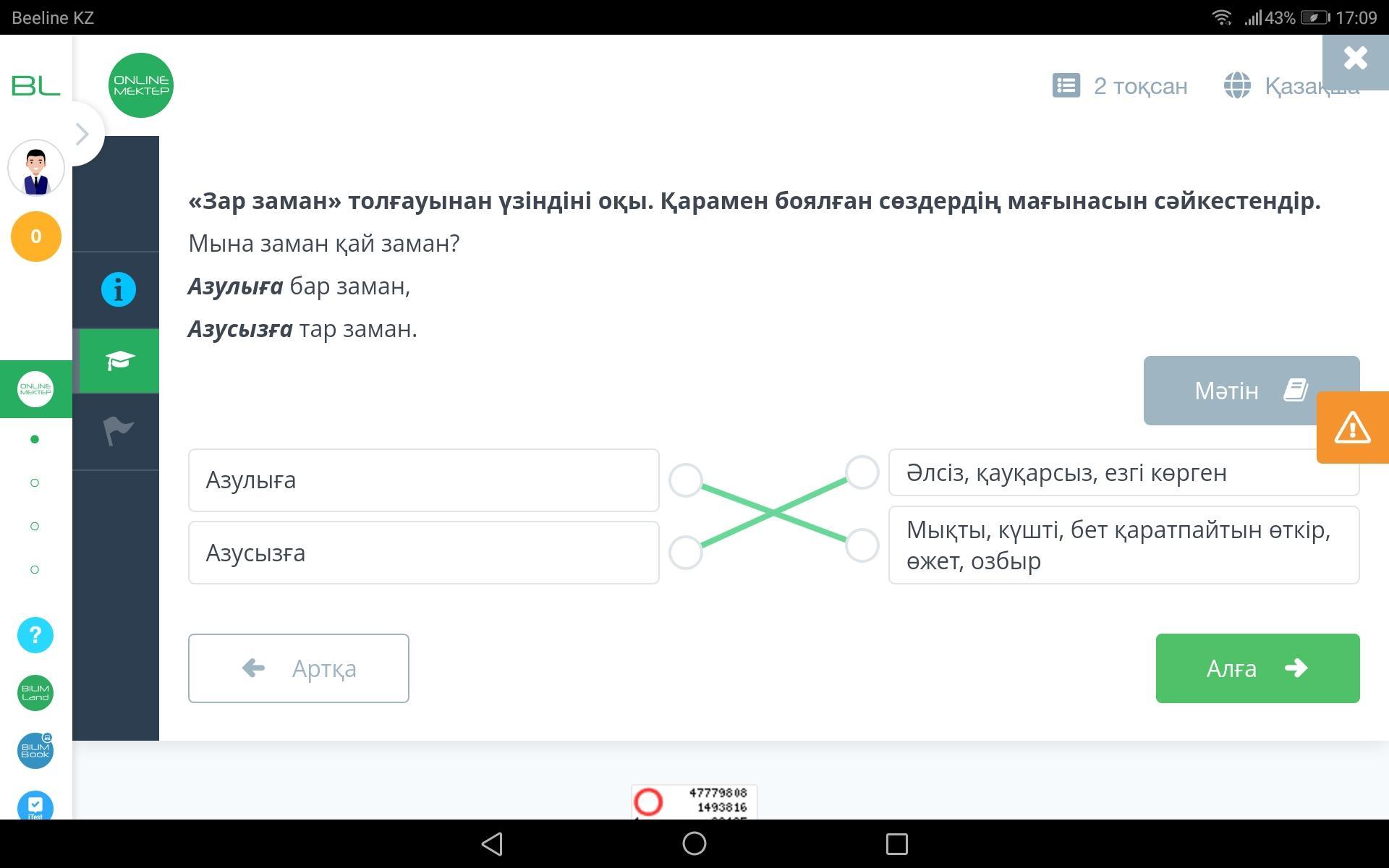 «Зар заман» толғауынан үзіндіні оқы. Қарамен боялған сөздердің мағынасын сәйкестендір.