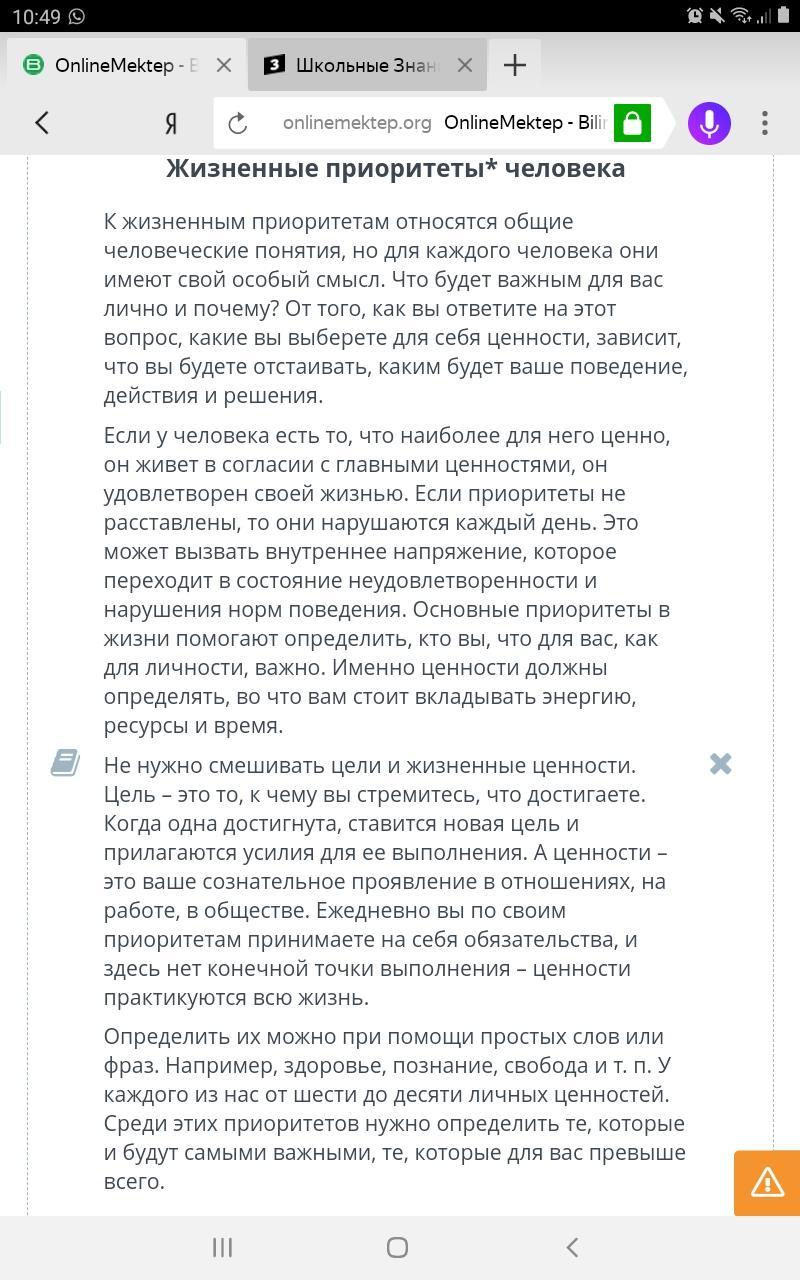 Прочитай текст «Жизненные приоритеты человека». Определи, будет ли вопрос в начале текста «Что будет важным для вас лично и почему?» отражать основную мысль текста.