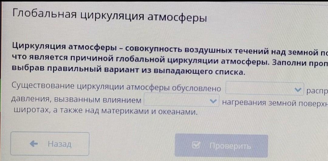 существование циркуляции атмосферы обусловлено распределением атмосферного давления в взаимным влиянием нагревание земной поверхности на широтах а также над материками и океанами. помогите плз.