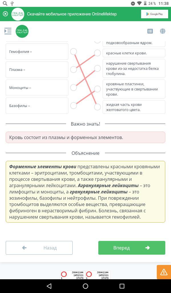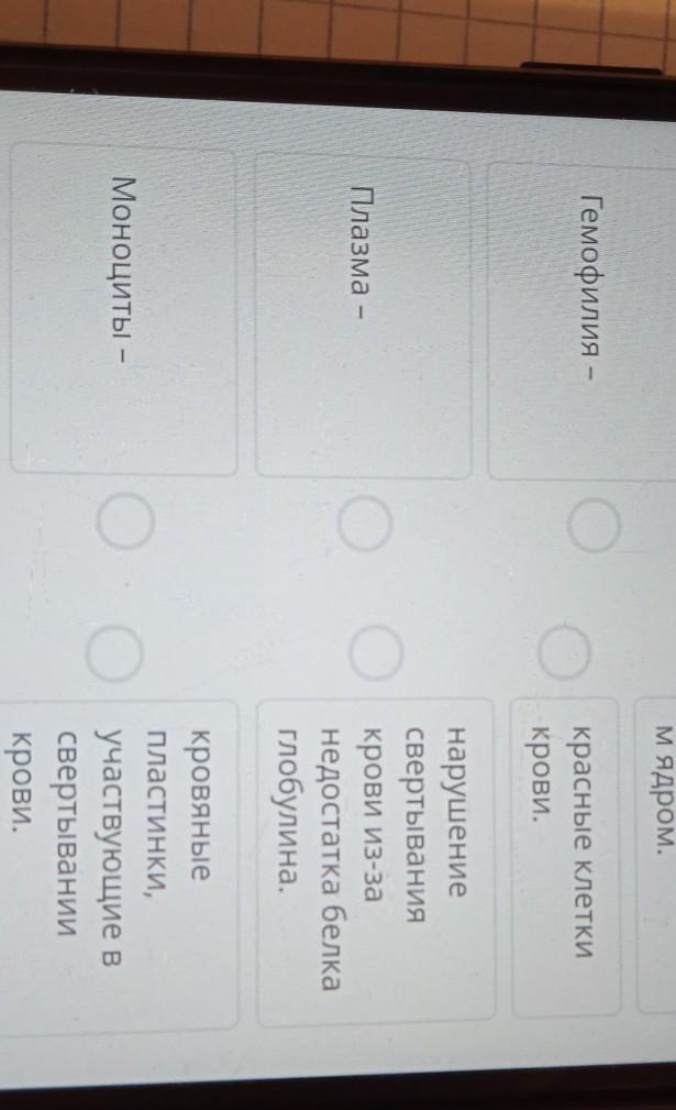 Сопоставьте термины и их определения свертывания крови в эритроцитах тромбоцитах гемов большая плазма моноциты и базофилы пж