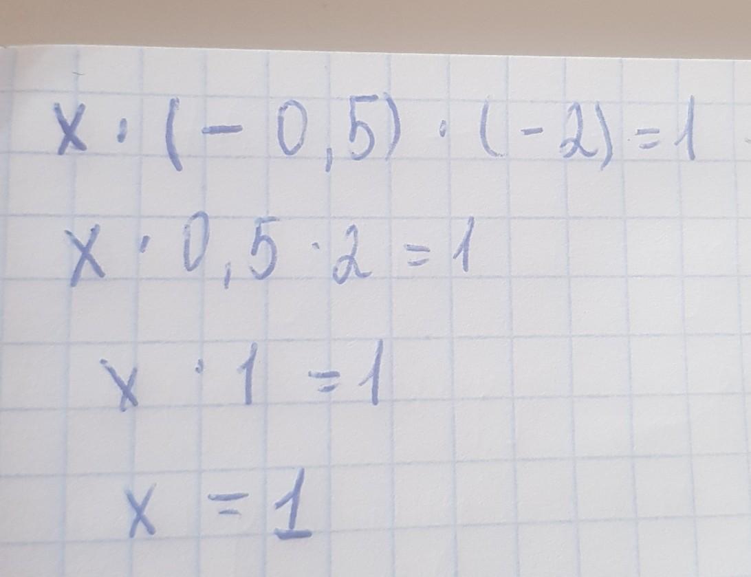 Белгісіз x көбейткішінің мәнін тап: x ∙ (– 0,5) ∙ (– 2) = 1.