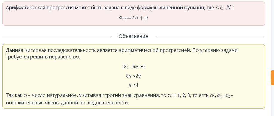 ПОМОГИТЕ СРОЧНО НАДО ПОЖАЛУЙСТА Сколько положительных членов содержит арифметическая прогрессия an = 20 – 5n ?