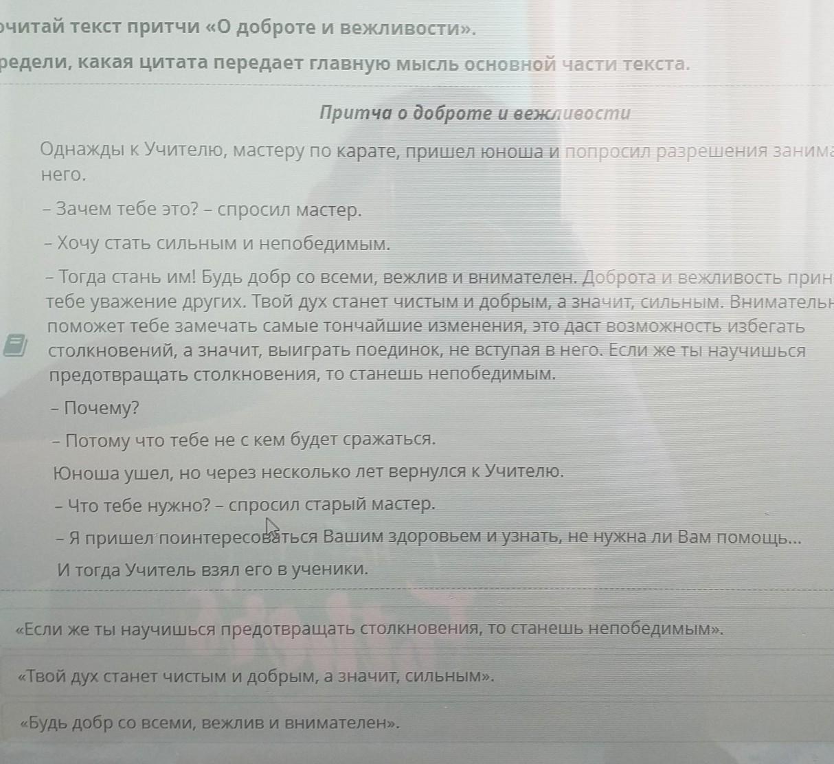 Прочитай текст притчи «О доброте и вежливости».