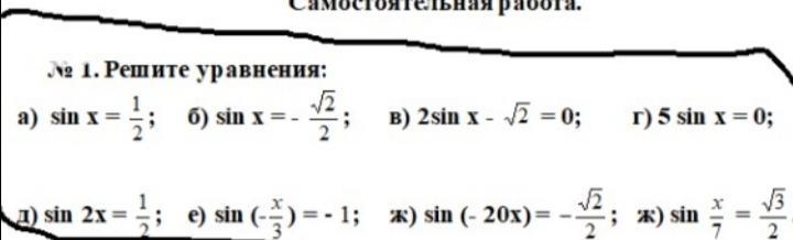з) sin x/7= √3/2 х/7= п/3+2пк х=2п/3+2пк