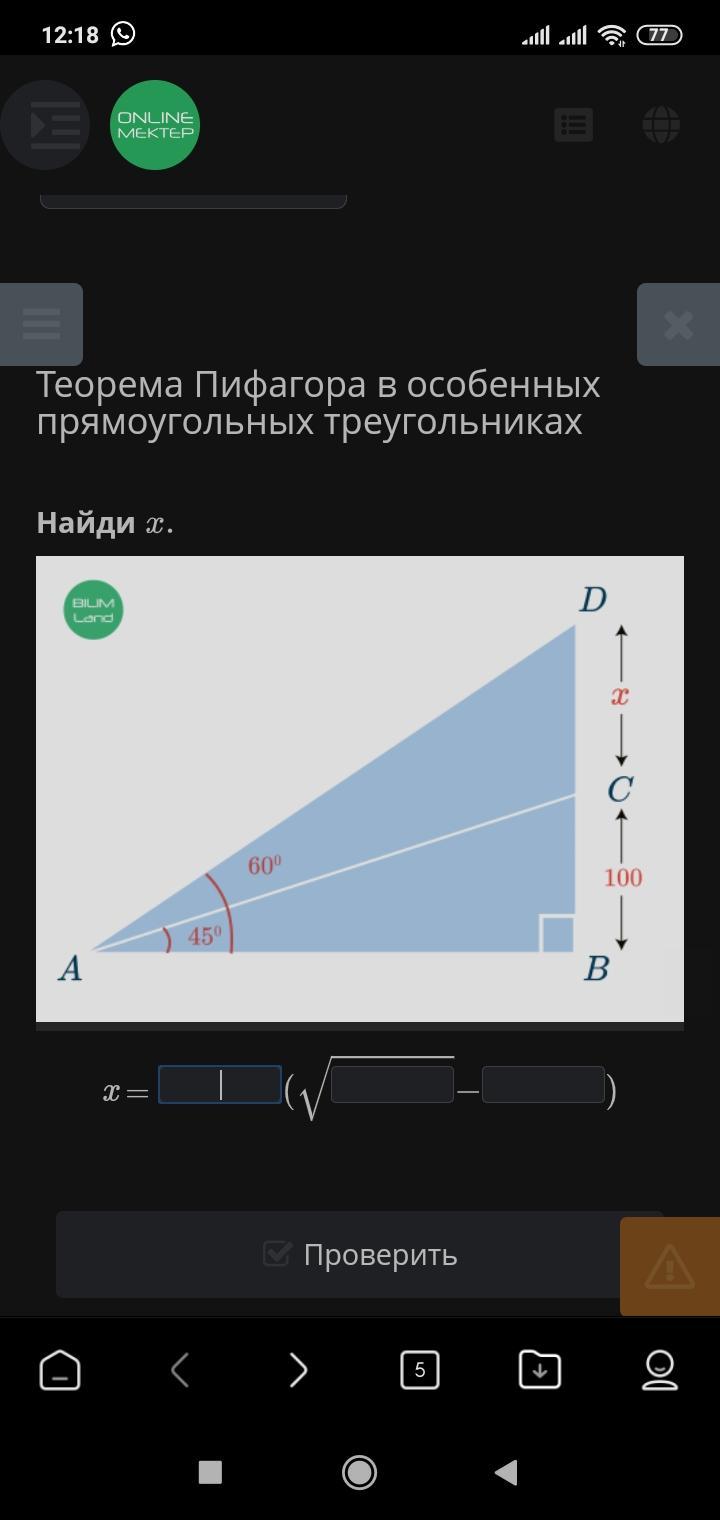 Рассмотрим ΔАВС: <В=90°, <ВАС=45°, значит <АСВ=90°-45°=45°.