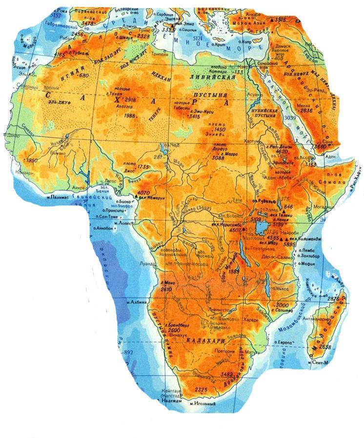 Если посмотреть на физическую карту Африки, которая дана ниже в приложении, то можно заметить, что на материке преобладает равнинный рельеф.Это плоскогорья, нагорья, равнины и плато.