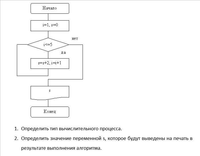 ответ s= 10 так как i =5 цыкл прекращает работать когда i будет равен пяти