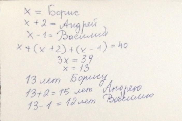 Василию 12 лет, Борису 13 лет, Андрею 15 лет