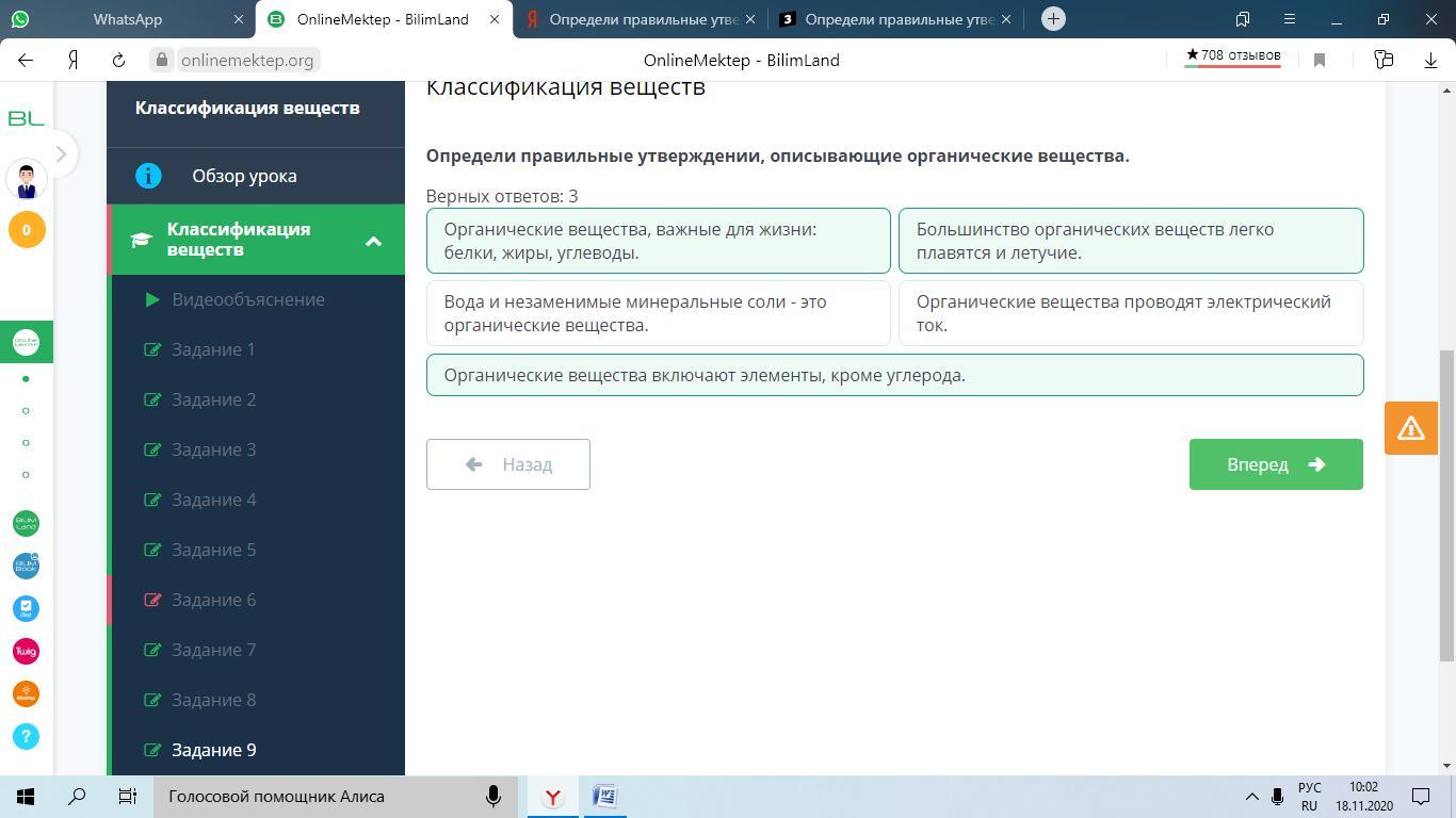 Органические вещества, важные для жизни: белки, жиры, углеводы.