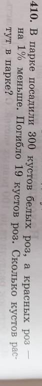 Решение: Найдём количество красных роз. Если они меньше на 1%, то соответственно красных роз 99% от белых роз. Красные розы=300×99/100=297.