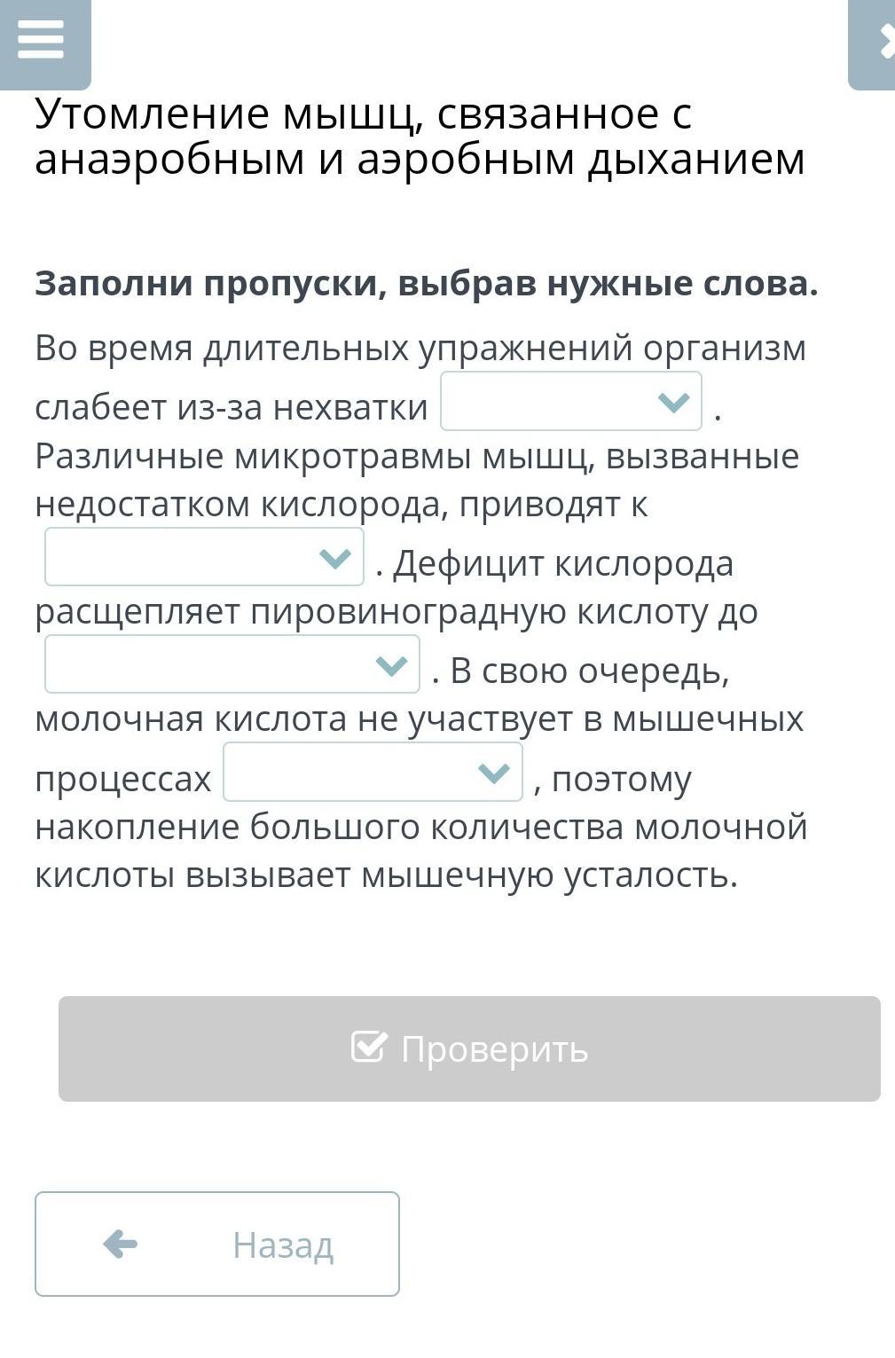 Ответ: гликогенов, утомляемости, молочной кислоты сокращения