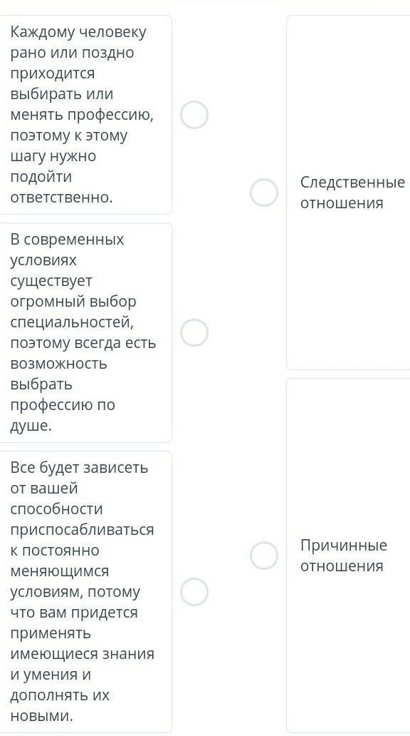 Определи, какие из приведенных примеров отражают причинные отношения, какие – следственные.