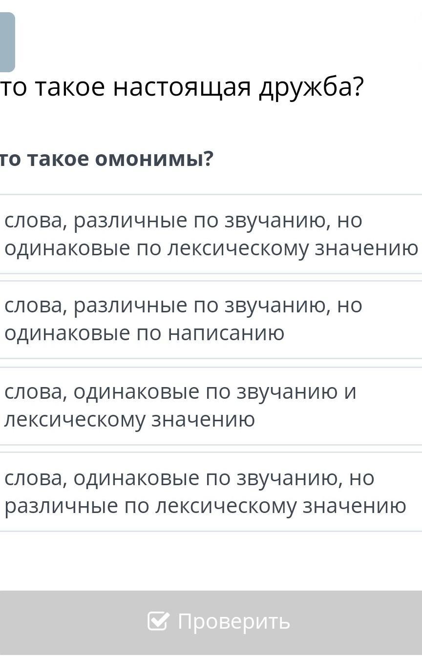 Омонимы — слова одинаковые по написанию и звучанию, но разные по значению.
