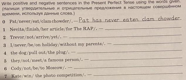 (Напиши утвердительные и отрицательные предложения в настоящем совершённом.
