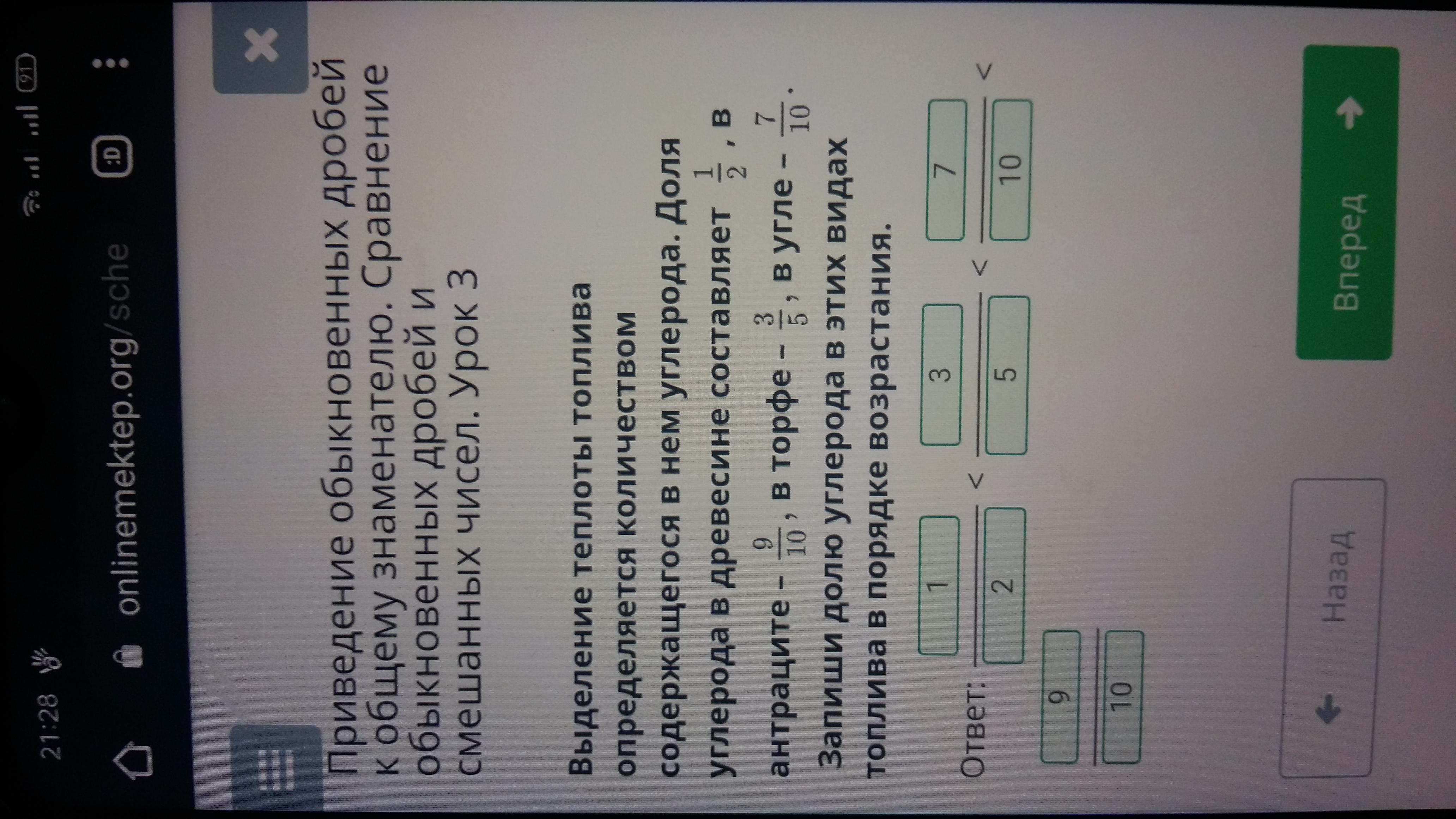 выделение теплоты топливом определяется количеством содержащегося в нем углерода. Доля углерода в древесине состовляет- одну вторую, в антраците- девять десятых, в торфе-три пятых, в угле-семь десятых. Запишите долю углерода в топливе в порядке возрастания помогите пж