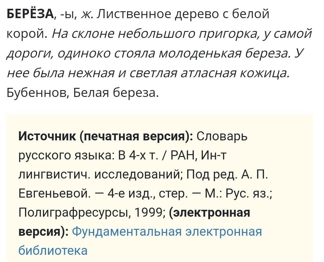 1. «Берёза, - лиственное дерево с белой корой и с сердцевидными листьями. (С., И.