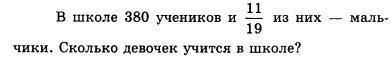 11/19 от 380 380*11/19=220 (мальчики) 380-220=160 (девочки)